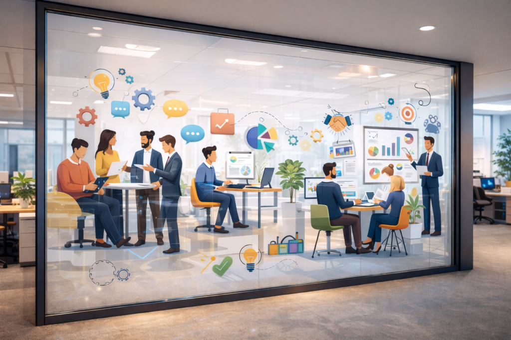 - Corporate branding glass features